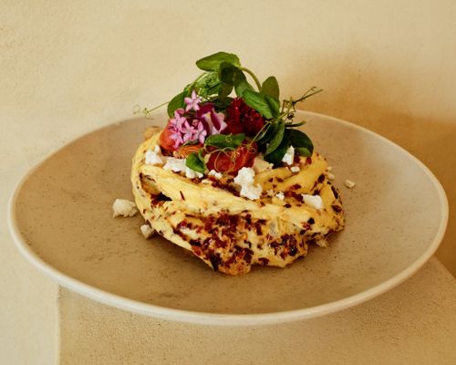 Fluffy chilli scrambled eggs with creamy goats cheese, relish, served on organic sourdough. GFO, DFO