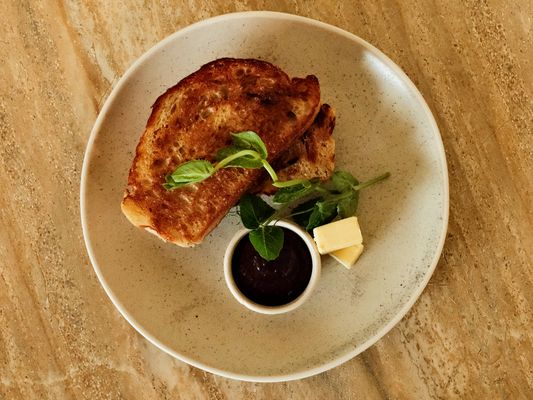 Toasted organic sourdough served with your choice of spread: butter, peanut butter, house-made seasonal jam, or honey. GFO, V, VgO